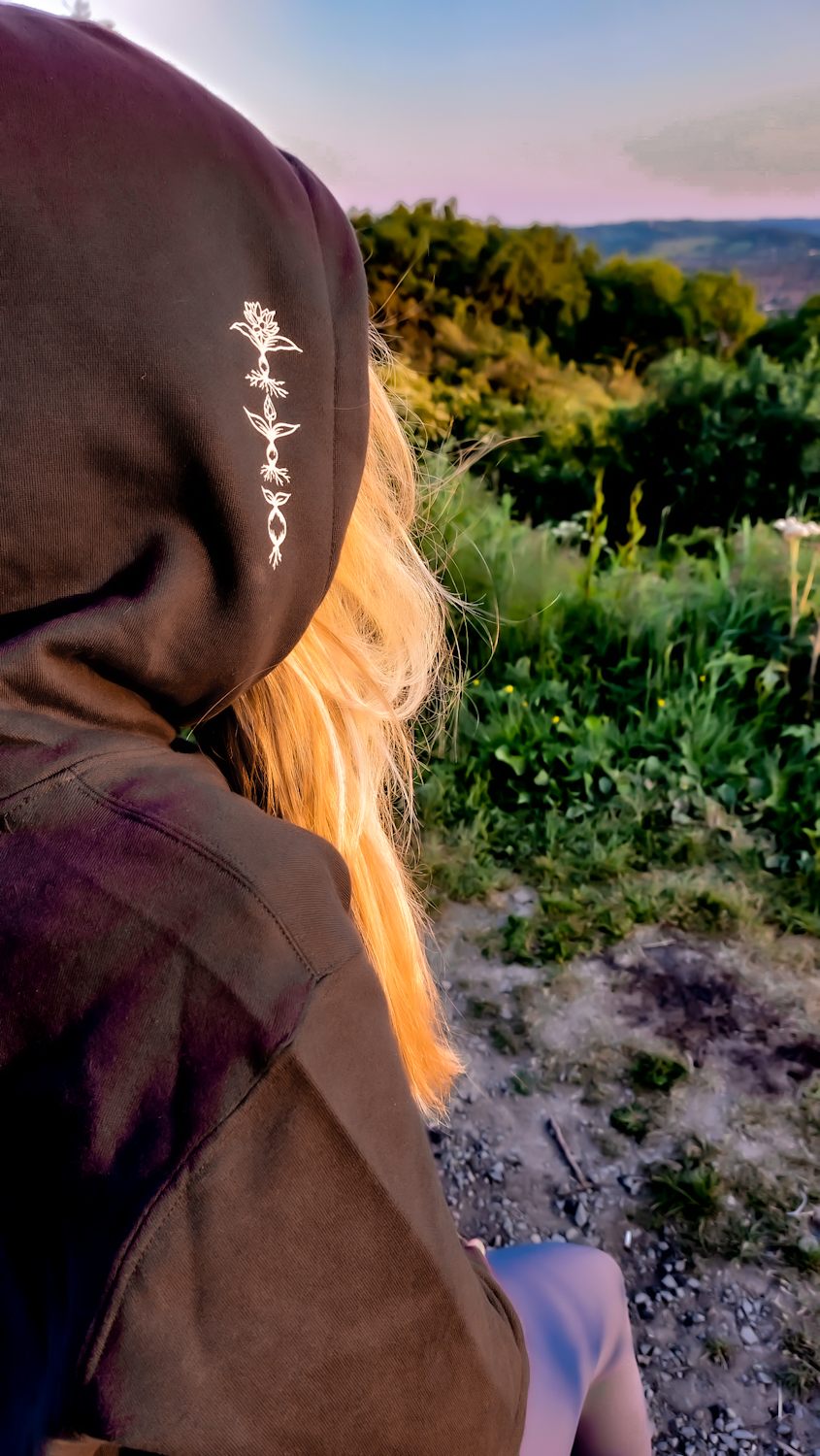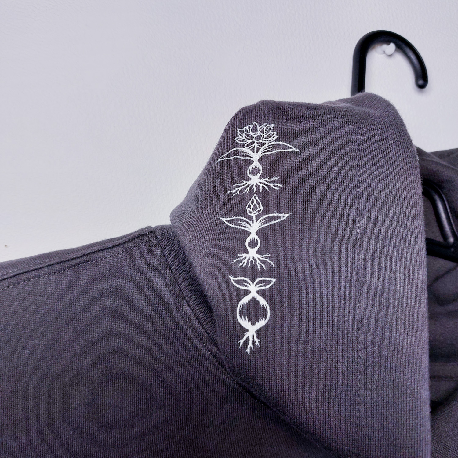 Introducing the Dusk to Dawn hoodie! Cosy up next to the campfire or keep the party going from dusk to dawn in this super soft and cosy hoodie. Featuring four ultra detailed prints that represent the cycles of animal and plant life along with the lunar and solar cycles. The fabric colour is ‘Ash Black’ – a soft, very flattering black.
