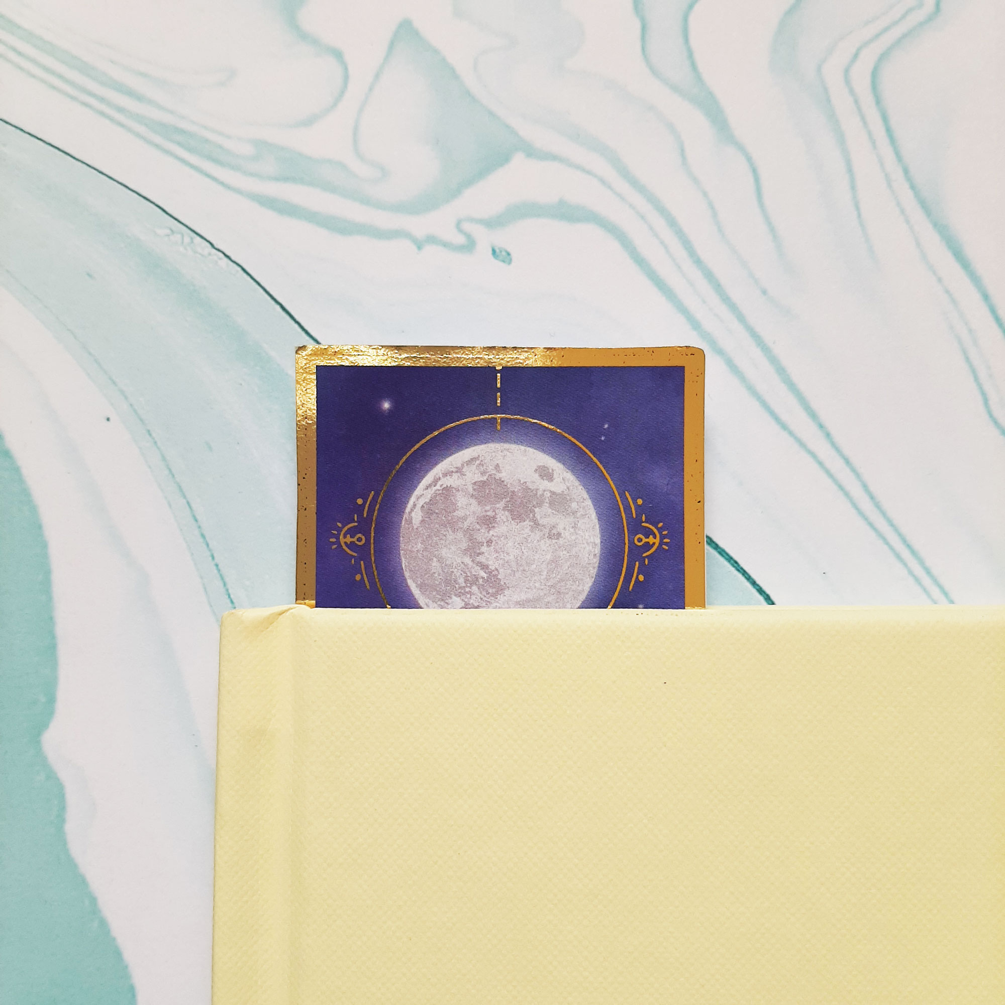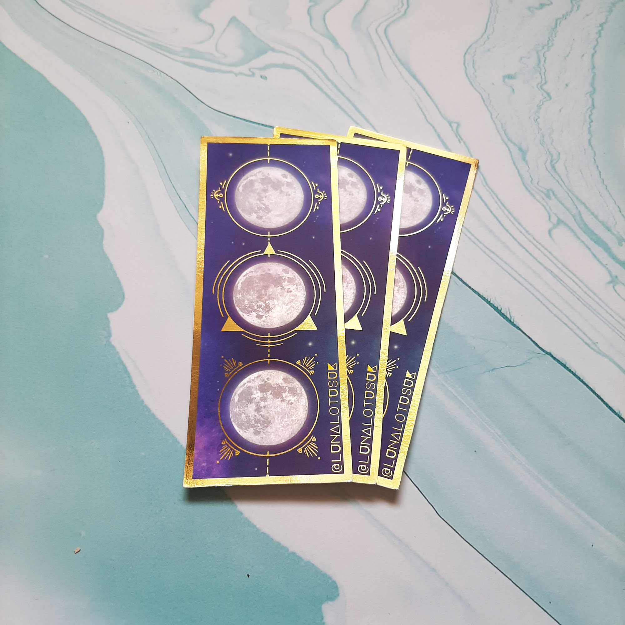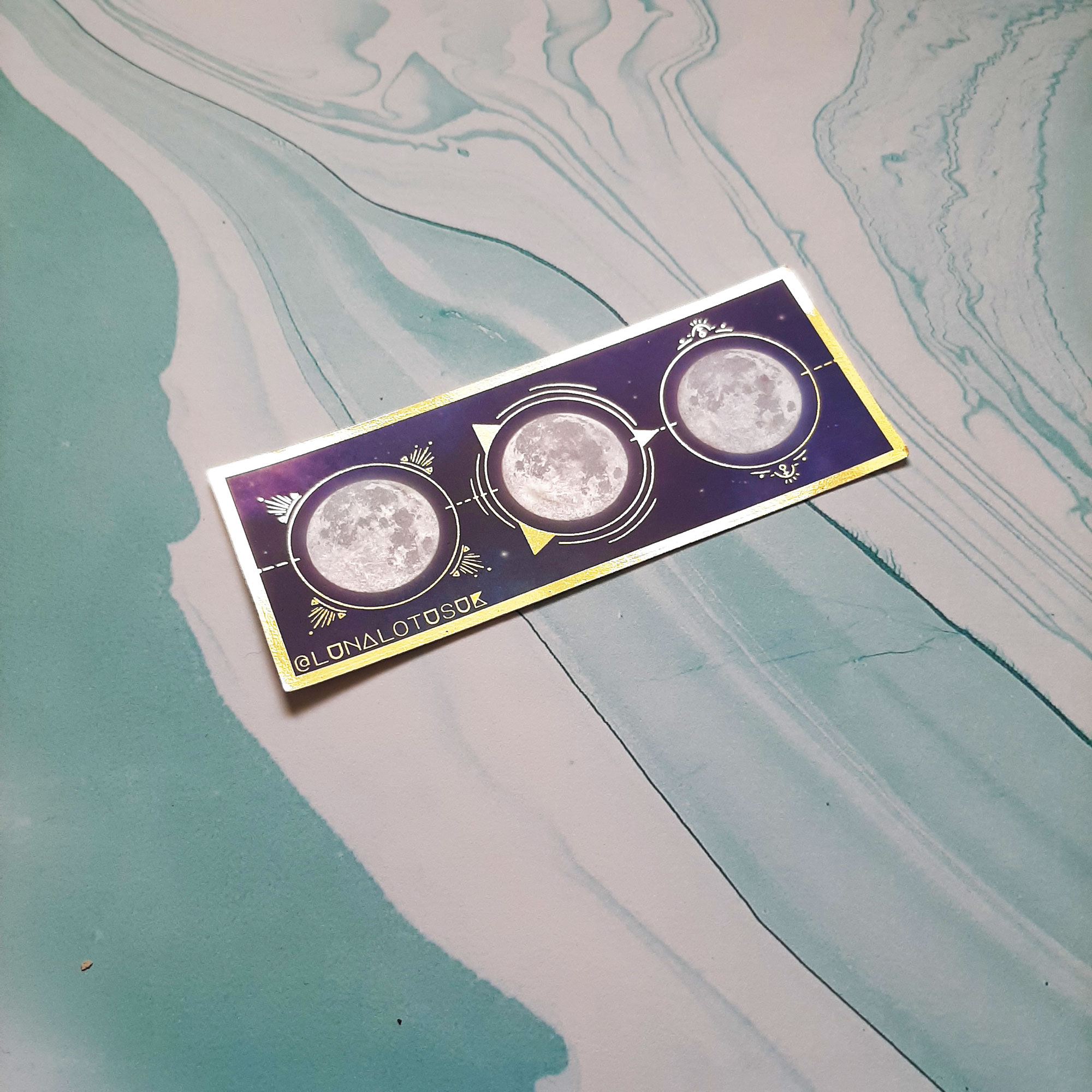 Moon phase gold foiled bookmark with celestial magic symbols!